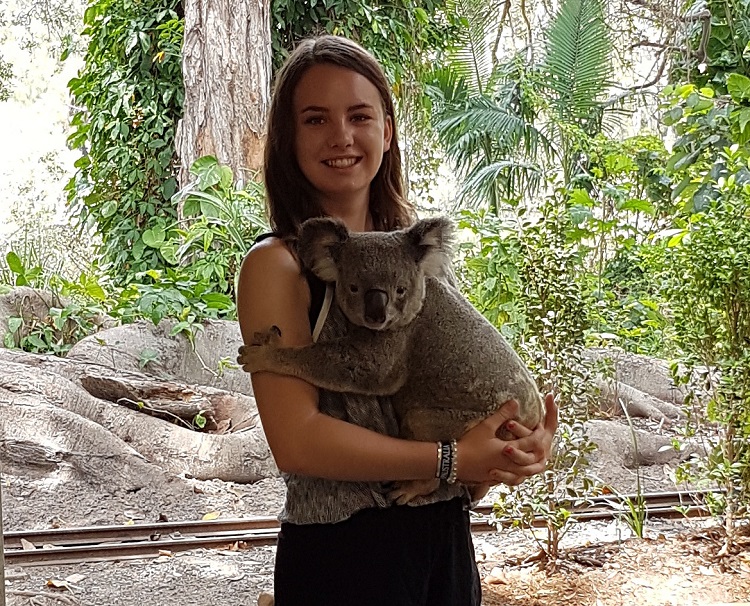 Alicia is from Germany and completing an Events internship in Sunny Sydney. She has been extremely lucky to get a warm, soft hug from a cuddly koala…great photo!:
